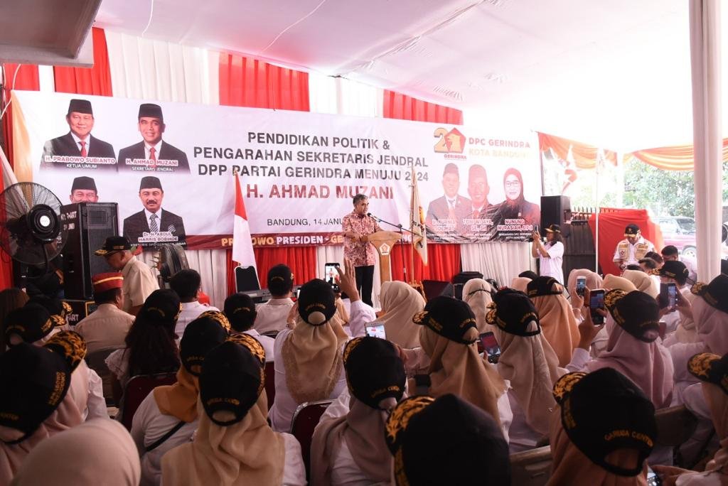 Dalam sambutannya, seperti dikutip dalam siaran pers yang diterima kantor pusat Serikat Media Siber Indonesia (SMSI), Muzani menargetkan Partai Gerindra harus menjadi pemenang pada Pemilu 2024 di Jawa Barat.
