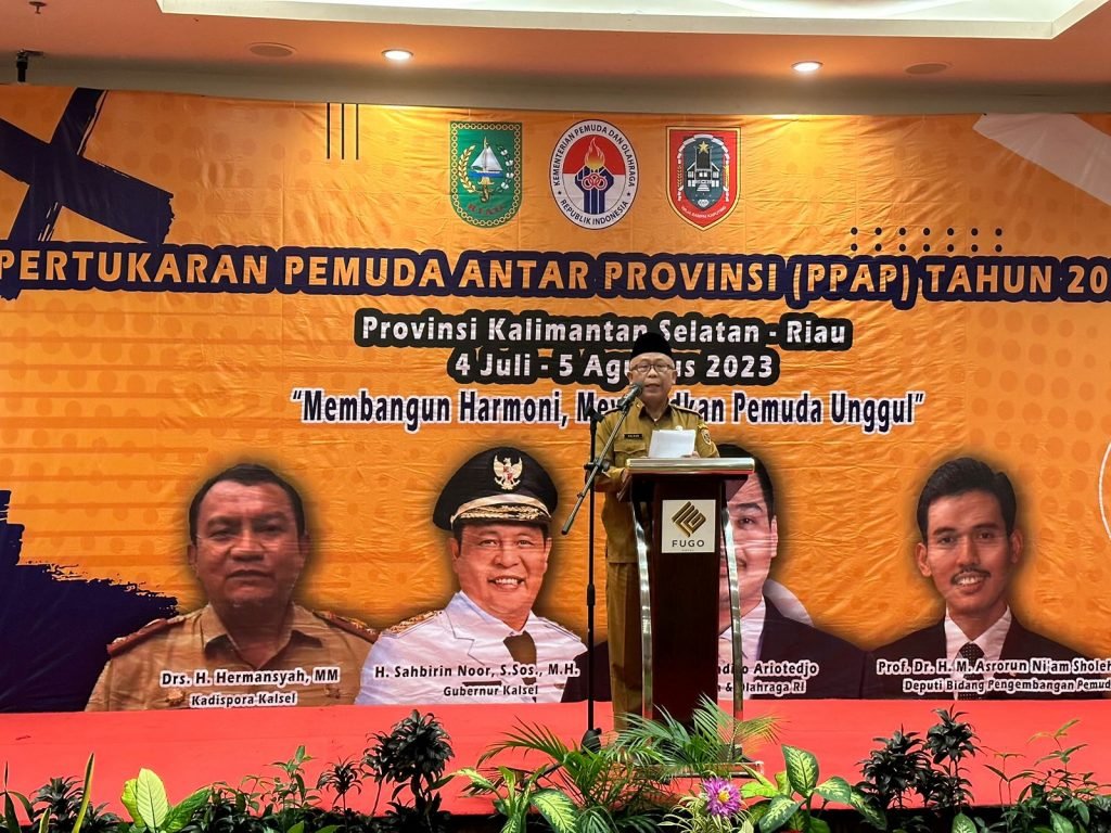 Sin.co.id-Pemerintah Provinsi (Pemprov) Kalimantan Selatan (Kalsel) melalui Dinas Pemuda dan Olahraga (Dispora) Provinsi Kalsel melaksanakan program Pertukaran Pemuda Antar Provinsi (PPAP) yang merupakan kerja sama Provinsi Kalsel – Riau mulai 4 Juli hingga 5 Agustus 2023, diikuti 35 pemuda dari 35 provinsi, Banjarmasin, Selasa (4/7/2023).